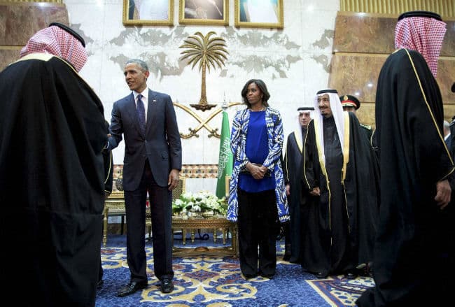 हालांकि बराक ओबामा और मिशेल ओबामा को एयरपोर्ट पर स्वागत करने के लिए सऊदी अरब के नये किंग शाह सलमान और सहजादे मुकरीन भी पहुंचे थे. उन्होंने बराक ओबामा और मिशेल का हाथ मिलकर स्वागत किया. उस वक्त सैन्य बैंड अमेरिका और सऊदी अरब के राष्ट्रगानों की धुन बजा रहा था.