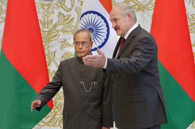 मिंस्क : भारत ने बुधवार को बेलारूस से कहा कि वह उसके साथ संयुक्त उद्यमों के लिए 10 करोड डालर की ऋण सुविधा देगा, जबकि पूर्वी यूरोपीय देश ने मेक इन इंडिया पहल में रुचि दिखाई है. राष्ट्रपति प्रणब मुखर्जी ने अपने बेलारूस के समकक्ष एजी लुकाशेंको से अपनी मुलाकात के दौरान उन्हें भारत के इस फैसले से अवगत कराया. दोनों देशों ने रक्षा एवं सुरक्षा मुद्दों पर साथ-साथ काम करने का फैसला किया तथा परस्पर विश्वास बढाने के लिए 17 बिंदुओं वाले खाके पर सहमति जताई. दो दिवसीय यात्रा पर कल रात यहां पहुंचे मुखर्जी का बेलारूस के राष्ट्रपति एजी लुकाशेंको ने पैलेस ऑफ इंडिपेंडेंस में परंपरागत तरीके से समारोहपूर्वक स्वागत किया.