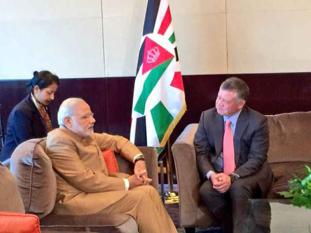 न्यूयार्क: प्रधानमंत्री नरेन्द्र मोदी ने आज संयुक्त राष्ट्र महासभा में अपने कार्यक्रम से इतर जार्डन के शाह अबदुल्ला से मुलाकाम की. जार्डन के शाह के साथ मोदी की मुलाकात को पश्चिम से जुड़ने की नीति (लुक वेस्ट) विशेष तौर पर पश्चिम एशिया क्षेत्र से संबंधों को नई गति प्रदान करने के प्रयासों के तौर पर देखा जा रहा है .