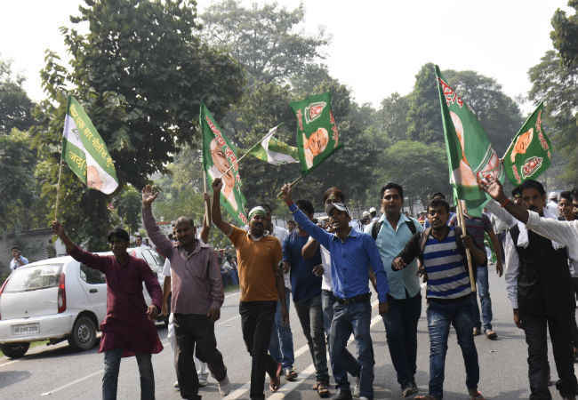 आवास के ठीक बाहर राज्यसभा सांसद और पवन वर्मा किसी अंग्रेजी चैनल से बात कर रहे हैं. वो बता रहे हैं कि हम तो पहले से आश्वस्त थे. आवास के बाहर होली-दिवाली एक साथ मन रही है. कार्यकर्ता एक दूसरे को गुलाल लगा रहे हैं. पटाखों के शोर में न्यूज चैनल के रिपोर्टरों की आवाज दब सी जा रही है. कार्यकर्ताओं का उत्साह कम होने का नाम नहीं ले रहा है. आवास पर बधाई देने के लिएपहुंचे शिक्षा मंत्री पी. के शाही से बातचीत होती है. वह बताते हैं कि बिहार में संप्रदायिकता की राजनीति नहीं चली. बीजेपी वाले ओछी राजनीति करते रहे. जनता ने नाकार दिया. मीडिया के पूछने पर पी. के. शाही कहते हैं कि आवश्कता पड़ने पर नीतीश कुमार केंद्र की राजनीति में लीड करेंगे.