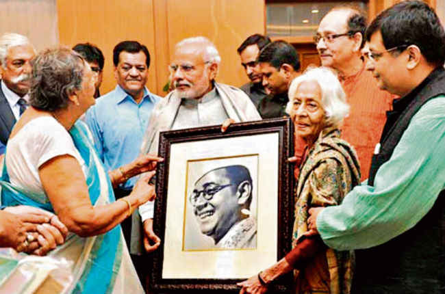 14 अक्तूबर, 2015 : प्रधानमंत्री नरेंद्र मोदी ने नयी दिल्ली में अपने आवास, 7 रेसकोर्स रोड, पर नेताजी के परिवार के सदस्यों के एक प्रतिनिधिमंडल के साथ मुलाकात में घोषणा की थी कि भारत सरकार नेताजी सुभाष चंद्र बोस से संबंधित फाइलों को सार्वजनिक करेगी और उन्हें जनता के लिए सुलभ बनायेगी. इस मौके पर नेताजी के परिजनों ने प्रधानमंत्री को नेताजी का एक पोर्टेट सौंपा था.