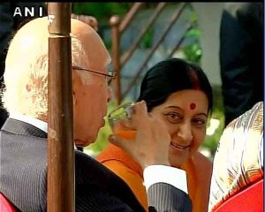 सार्क शिखर सम्मेलन के दौरान नास्ते पर मिले सुषमा-सरताज, दिखी गर्मजोशी