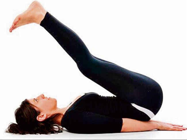 अब आप अपने दोनों पैरों को सीधा रखते हुए ऊपर की तरफ उठाएं इस दौरान आपके नितंब का स्पर्श जमीन पर होगा या अपनी मुिट्ठयों पर उसे टिकाने का प्रयास करें. अब अपने दोनों पैर के पंजों काे सिर की ओर लाते हुए उन्हें सिर की तरफ झुकाएं. इस क्रम में आप अपने पैरों को एक-दूसरे से अधिक-से-अधिक अलग करें और पुन: उन्हें एक साथ मिला दें. आप पैरों और धड़ के बीच 45 अंश का कोण बनाये रखें. इस अवस्था में सुविधानुसार रुकने का प्रयास करें. अब आप दोनों पैरों को सीधा रखते हुए उन्हें धीरे-धीरे नीचे जमीन पर ले जाएं. यह अभ्यास का एक चक्र हुआ.
