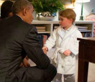 विलियम और केट के 2 साल के प्रिंस जॉर्ज को सोने से पहले इन खास मेहमानों के साथ कुछ वक्त बिताने का मौका मिला. इस दौरान प्रिंस जॉर्ज पजामा और वाइट गाउन में थे जिसकी तस्वीर सामने आई है. तस्वीरों में जॉर्ज को बराक ओबामा से हाथ मिलाते देखा जा सकता है इतना ही नहीं प्रिंस जॉर्ज को घोड़े पर बैठकर खेलते देखा जा सकता है. सूत्रों की माने तो यह वही घोड़ा है जिसे बराक ओबामा ने जॉर्ज के जन्म पर गिफ्ट किया था.
