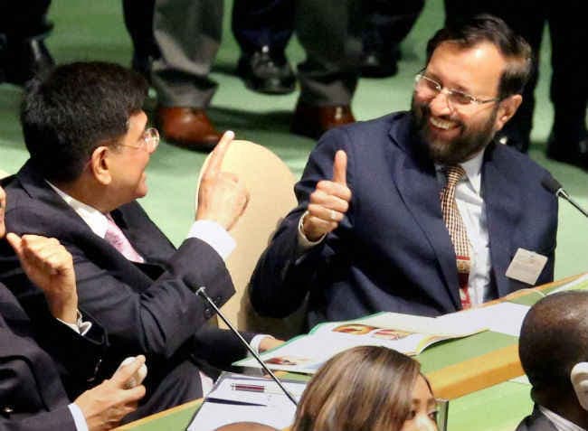 जावडेकर ने भारत की ओर से समझौते पर हस्ताक्षर किये जबकि गोयल ने उच्च स्तरीय जलवायु परिवर्तन हस्ताक्षर समारोह के इतर फ्रांस की पारिस्थितिकी, सतत विकास एवं ऊर्जा मंत्री और 21वीं कांफ्रेंस ऑफ द पार्टीज (सीओपी21) की अध्यक्ष सेगोलेने रॉयल के साथ अंतरराष्ट्रीय सौर गठबंधन की बैठक की सह अध्यक्षता की. केरी के साथ बैठक के बाद जावडेकर ने बताया कि दोनों पक्षों ने ‘कई मामलों की एक पूरी श्रृंखला’ पर बात की.
