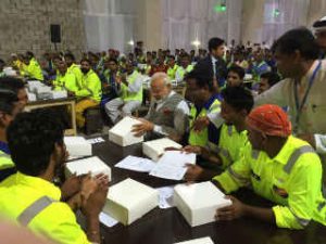 मोदी ने रेखांकित किया कि उनकी पांच देशों की यात्रा के दूसरे चरण में, कतर के दो दिवसीय दौरे पर पहला कार्यक्रम भारतीय कामगारों की शिविर में आना था. उन्होंने कहा, ‘‘मैं शाम में दोहा आया और मेरे कार्यक्रम में पहले नंबर पर आपसे मिलना था.” कतर में भारतीय मूल के छह लाख से ज्यादा लोग रहते हैं. अपने छोटे से संबोधन के बाद मोदी ने कामगारों के साथ बातचीत की और साथ में जलपान भी किया. शिविर में अपने 30 मिनट के कार्यक्रम के दौरान उन्होंने कई कामगारों से हाथ भी मिलाए.