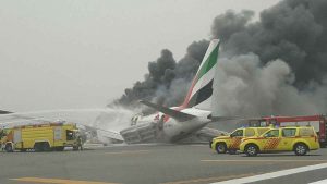 वीडियो दृश्यों में बोइंग 777 से धुआं निकलता दिखाई दे रहा है. विमान में 300 यात्रियों के बैठने की सुविधा है. घटना के बाद दुबई हवाई अड्डे से विमानों की रवानगी रोक दी गई.