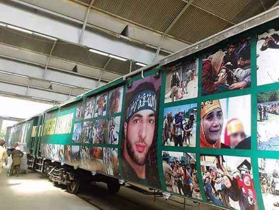 खबर है कि ट्रेन पर बुरहान वानी की तस्वीर बतौर शहीद के तौर पर लगाई गई है. इतना ही नहीं बीते दिनों कश्मीर हिंसा में मारे गए लोगों के पोस्टर को भी ट्रेन के बोगियों पर जगह दी गई है. पाकिस्तान के साथ ही भारत के कुछ अलगाववादी नेता भी इस भारत विरोधी अभियान में पाकिस्तान सरकार का समर्थन कर रहे हैं.