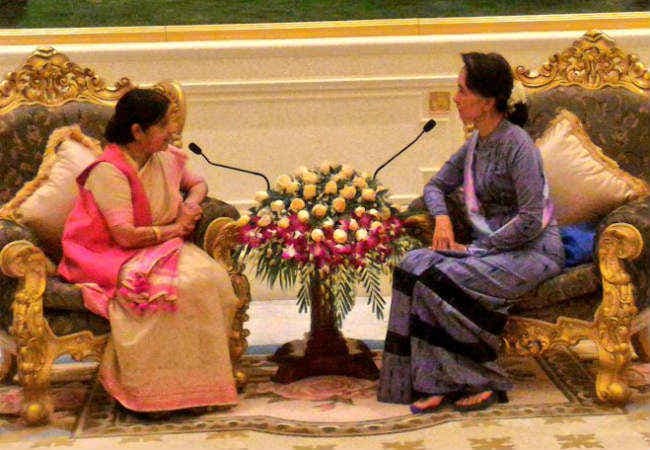 सैन्य शासन के काल में संविधान के तहत सू की के राष्ट्रपति बनने पर प्रतिबंध लगा हुआ है. बहरहाल, देश की पहली असैन्य सरकार पर उनकी मजबूत पकड है. गृह, रक्षा और सीमा मामलों के अहम मंत्रालयों पर अब भी सेना का नियंत्रण है. संसद की एक चौथाई सीटें गैरनिर्वाचित सैनिकों के लिए आरक्षित हैं. इत्तेफाकन, सुषमा की यह यात्रा सू की की चीन की उच्च स्तरीय यात्रा के कुछ ही दिनों बाद हो रही है.