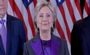 उन्होंने कहा, ‘‘मैंने डोनाल्ड ट्रंप को बधाई दी और हमारे देश की तरफ से उनके साथ काम करने का प्रस्ताव दिया. मुझे आशा है कि वह सभी अमेरिकियों के लिए सफल राष्ट्रपति बनेंगे. ”हिलेरी ने कहा कि राष्ट्र को चुनावों के नतीजों को स्वीकार करना चाहिए और ट्रंप के नेतृत्व में आगे बढना चाहिए. हिलेरी के भाषण के बाद जाते वक्त उनके समर्थकों ने खडे होकर तालियां बजाईं.