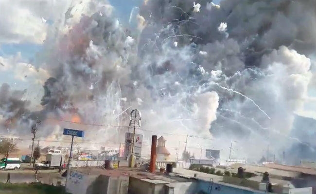 मेक्सिको सिटी : मेक्सिको में सैन पाबलिटो के पटाखा बाजार में आज हुए सिलसिलेवार धमाकों में 27 लोगों की मौत हो गई. इस हादसे में 70 अन्य घायल भी हुए जिन्हें इलाज के लिए ले जाया गया है. बताया जा रहा है कि घायलों में कुछ की हालत गंभीर बनी हुई है.