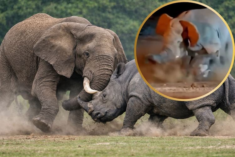 गैंडा भले की दूसरे जानवरों के सामने ताकतवर होगा, लेकिन गजराज के सामने उसकी एक नहीं चली. हाथी की ताकत के सामने गैंडे का बल बौना साबित होता नजर आने लगा. हाथी की ताकतवर सूंड, भारी शरीर और पैने दांतों ने गैंडा को धाराशायी कर दिया. दो मिनट में ही साफ हो गया की हाथी गैंडे की परखच्चे उड़ा देगा. थोड़ी ही देर की लड़ाई में गैंडा का तेवर ढीला पड़ जाता है और वह पीछे हटने लगता है.