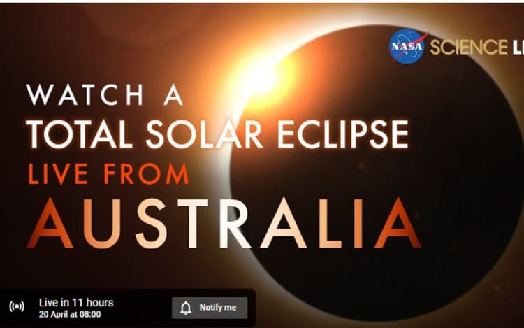 20 अप्रैल को भारतीय समयानुसार सुबह 8 बजे से नासा, नासा के विशेषज्ञों की टिप्पणियों के साथ-साथ ग्रहण के टेलीस्कोप का नजारा शेयर करेगा. आप इसे नीचे दिए गए लिंक पर देख सकते हैं. “निंगलू” ग्रहण को लाइव स्ट्रीम करने के लिए पर्थ ऑब्जर्वेटरी के साथ साझेदारी कर है. लाइव स्ट्रीम 20 अप्रैल को भारतीय समयानुसार सुबह 8 बजे शुरू होगी और आप इसे नीचे देख सकते हैं.
