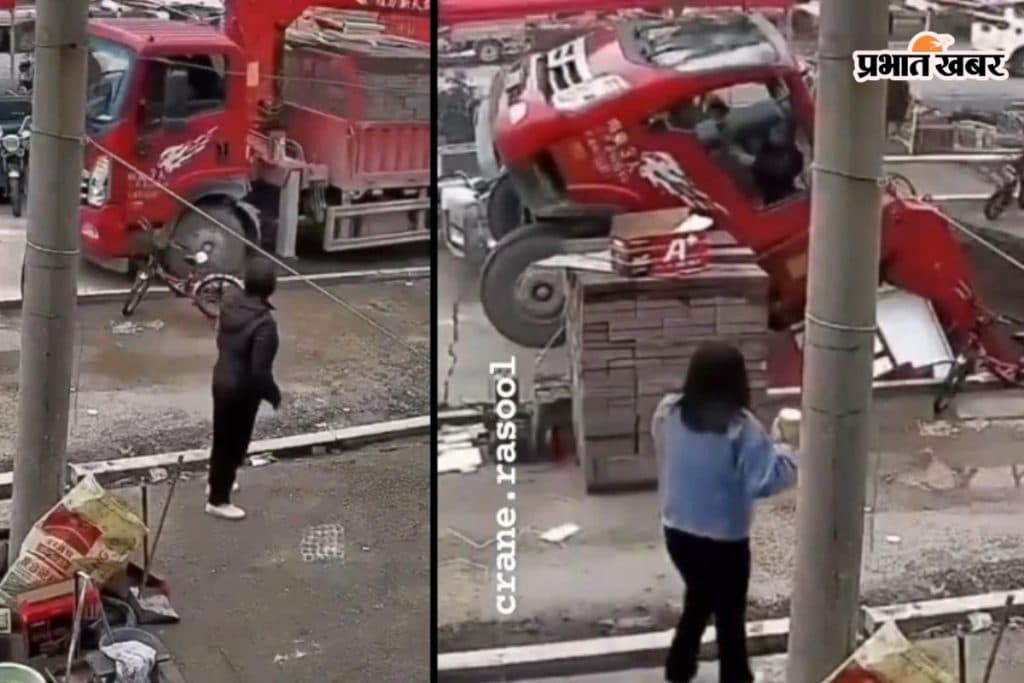 साइकिल हटते ही ट्रक धीरे-धीरे आगे बढ़ने लगता है, लेकिन अचानक एक चौंकाने वाली घटना होती है. जैसे ही ट्रक आगे बढ़ता है, सड़क का एक बड़ा हिस्सा अचानक धंस जाता है और ट्रक उसमें समा जाता है. वीडियो में साफ देखा जा सकता है कि ट्रक पूरी तरह से नीचे धंस गया. इस खतरनाक हादसे के बावजूद, यह राहत की बात है कि ट्रक चालक ने अपनी सूझबूझ से खुद को बचा लिया.