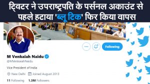 ट्विटर ने उपराष्ट्रपति के पर्सनल अकाउंट से पहले हटाया ‘ब्लू टिक’ फिर किया वापस