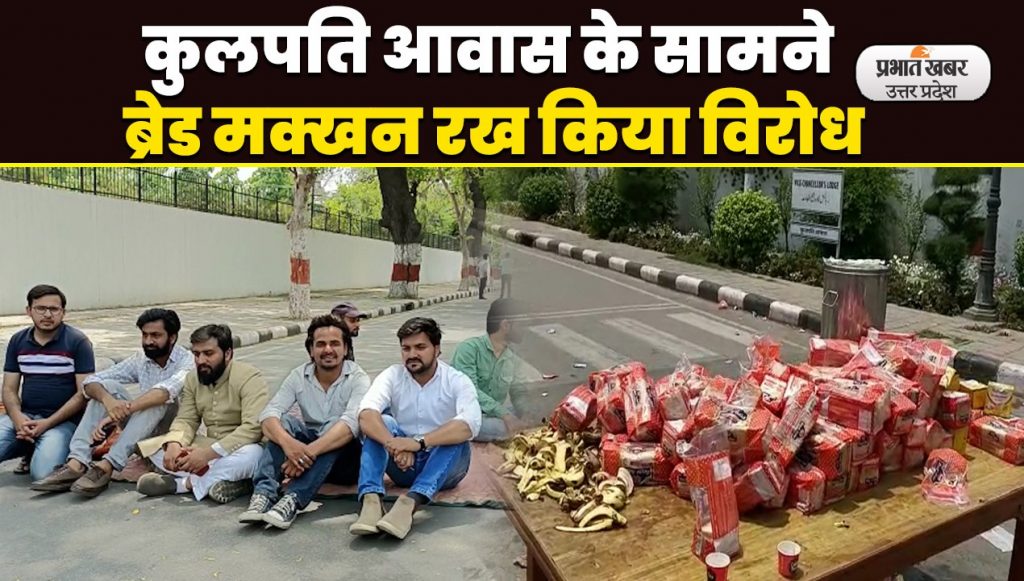 AMU हास्टल में खराब खाने को लेकर छात्रों का फूटा गुस्सा, कुलपति आवास के सामने किया विरोध-प्रदर्शन