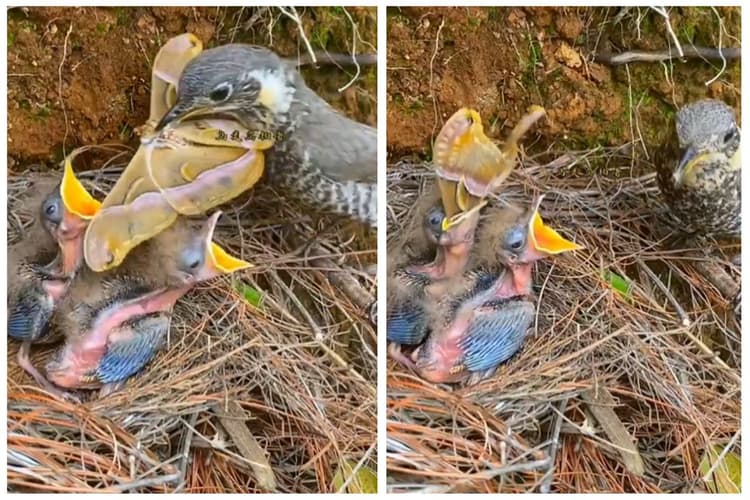 वीडियो में दिख रहा है कि घोंसले में पक्षी के दो छोटे बच्चे है, उनके पास ही उनकी मां भी है, जिसकी चोंच में एक बड़ी सी तितली है. पक्षी दोनों में से एक बच्चे के खुले मुंह में तितली डाल देती है. तितली का आकार काफी बड़ा था लेकिन पक्षी के नन्हे बच्चे ने उसे बड़ी आसानी से निगल लिया. आम तौर पर पक्षी के इतने छोटे बच्चे किसी जीव को साबुत नहीं निगल पाते हैं, वे छोटे-छोटे कीड़े या पतंगे ही खा पाते हैं. लेकिन, इस पक्षी की प्रतिभा दंग कर रही है. इसने बड़े से तितली को बड़ी आसानी से खा लिया.