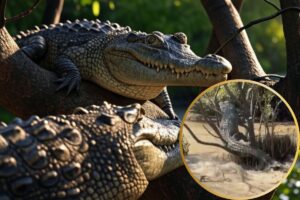 Viral Video: जंगल की दुनिया में हर दिन कुछ न कुछ मजेदार होता रहता है, लेकिन इस बार ऐसा कुछ हुआ जो लोगों को खूब हंसा रहा है. यहां एक वीडियो वायरल हो रहा है जिसमें एक मादा मगरमच्छ एक बड़े मगरमच्छ के सामने देखकर ऐसे दुम दबाकर भागी कि सीधे पेड़ पर चढ़ गई.