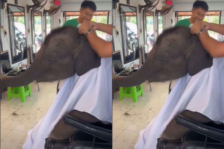 उसके गले में सफेद रंग का एप्रन बंधा हुआ है. वहीं, उसके पास एक आदमी खड़ा है, जो ट्रिमर से उसके छोटे बाल काट रहा है. आदमी के चेहरे की मुस्कान साफ बताती है कि उसे यह काम करते हुए बेहद मजा आ रहा है. वहीं, हाथी भी खुद को आईने में देखकर बेहद खुश नजर आ रहा है, मानो उसे अपना नया हेयरस्टाइल बहुत पसंद आ रहा हो.