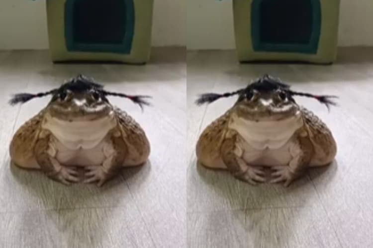 वीडियो में साफ देखा जा सकता है कि मेंढक के इंसानों की तरह काले बाल हैं, जिनसे उसने लड़कियों की तरह दो चोटियां बना रखी हैं. हालांकि, वीडियो को ध्यान से देखने पर पता चलता है कि यह बाल नकली हैं. अनुमान लगाया जा रहा है कि शायद किसी मालिक ने इस मेंढक को इंसानों के बालों से बना छोटा-सा विग पहनाया होगा.इस वीडियो को सोशल मीडिया प्लेटफ़ॉर्म इंस्टाग्राम पर शेयर किया गया है.