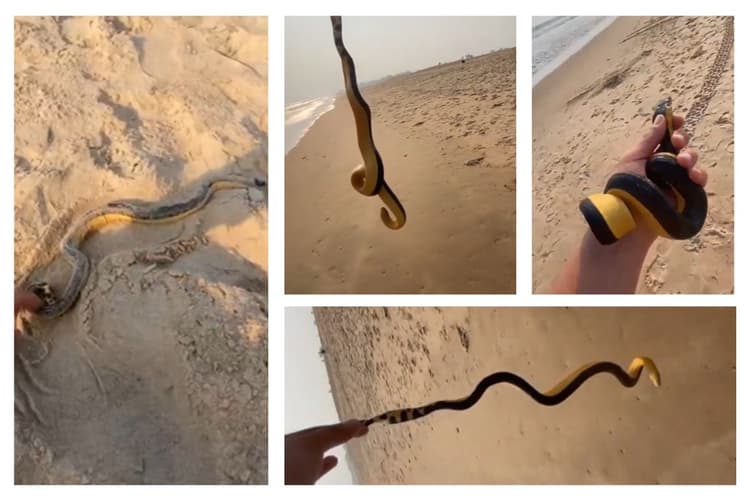सोशल मीडिया पर वायरल हो रहे वीडियो में दिख रहा है कि समुद्र की रेत पर एक येलो बेली स्नेक निर्जीव की तरह पड़ा हुआ था. एक शख्स ने बात-बात में उस खतरनाक सांप को अपने हाथों में उठा लिया. इसके बाद उसने सांप को अपने हथेली पर लपेटकर उसके मुंह से अपनी उंगलियों से पकड़ लिया. यह काफी जोखिम भरा था. शख्स सांप को हाथ में लपेटे केबिन की तरफ बढ़ा. इसके बाद जब इंटरनेट पर उस सांप की जानकारी देखी तो पैरों तले जमीन ही खिसक गई.