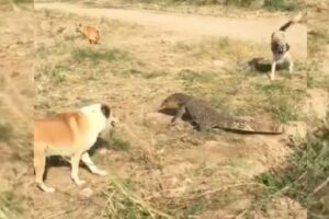 कुत्तों को छिपकली ने खदेड़ा