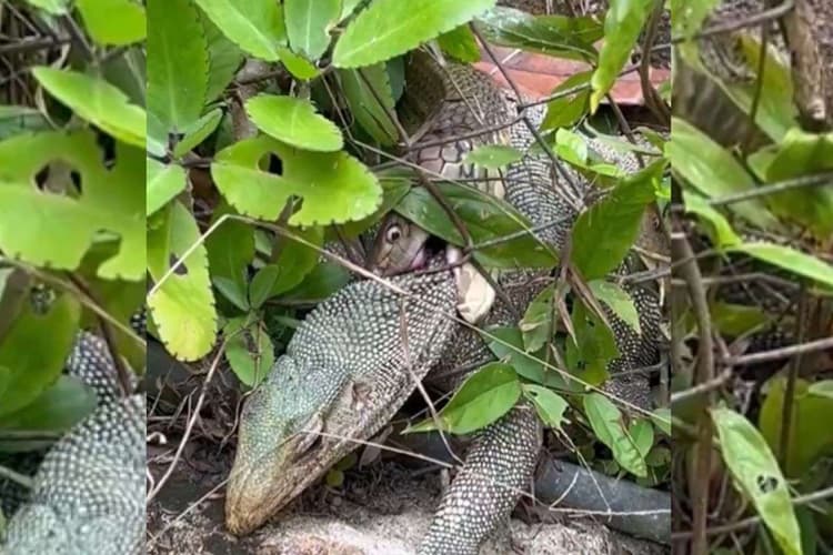 सांप ने किया मॉनिटर लिजर्ड पर खतरनाक हमला
