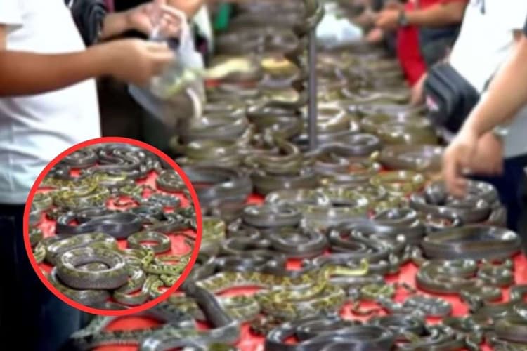वायरल वीडियो में सांप के साथ कुछ लोग नजर आ रहे हैं. टेबल के दोनों ओर लोग हैं. इस वीडियो को देखकर लगा रहा है कि टेबल के एक ओर सांप बेचने वाले खड़े हैं जबकि दूसरी ओर सांप के खरीदार हैं. वीडियो में लोग मास्क लगाए नजर आ रहे हैं. एक शख्स हाथ में प्लास्टिक का बैग लिये है. ऐसा लग रहा है कि वह सांप को खरीदते हुए मोलभाव कर रहा है. इसके बाद वह एक सांप को उठाता है और थैले में डालता है.