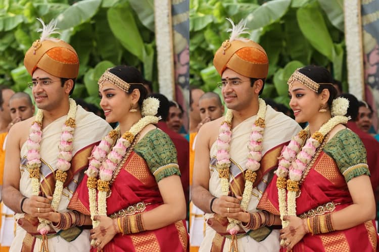 Viral video: गुरुवार को भाजपा सांसद तेजस्वी सूर्या कन्नड़ की गायिका शिवश्री स्कंदप्रसाद के साथ शादी के बंधन में बंधे. इनकी शादी की तस्वीरों ने सोशल मीडिया पर वायरल हो रही है. इसी बीच उनका एक वीडियो सामने आया है, जिसमें उन्हें अपनी पत्नी के साथ कन्नड़ भाषा में गाना गाते देखा जा सकता है. दोनों एक-दूसरे को देखते हुए सुर से सुर मिलाकर गा रहे हैं. बताया जा रहा है यह वीडियो शादी के बाद बेंगलुरु में हुए रिसेप्शन का है. वीडियो में शिवश्री को लाल रंग का लहंगा पहने देखा जा सकता है. वहीं तेजस्वी सूर्या कोट पेंट पहने नजर आ रहे हैं. दोनों ने अपने हाथों में मोबाइल लिए हुए हैं, जिसमें वे लिरिक्स देख गाना गा रहे हैं. सोशल मीडिया यूजर्स ने वीडियो पर प्रतिक्रिया देते हुए दोनों को शादी की शुभकामनाएं दी हैं. सोशल मीडिया प्लेटफॉर्म X पर इस वीडियो को शेयर किया गया है @NMoorthy1 नाम के यूजर ने.
