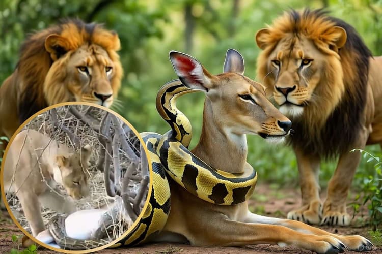 इंटरनेट पर वायरल हो रहे वीडियो में दिख रहा है कि एक हिरण को अजगर सांप ने अपनी कुंडली में जकड़ हुआ है. अजगर हिरण को निगलने की तैयारी में थी कि अचानक से मौके पर दो शेर आ गए. शेरों ने अजगर से की जकड़ से हिरण को निकालने की कोशिश की, लेकिन सांप भी शिकार को ऐसे ही जाने देने के मूड में नहीं था. एक बार तो अजगर ने शेरों पर हमला भी किया. 18 सेकंड के वीडियो को देखकर किसी के भी रोंगटे खड़े हो सकते हैं.
