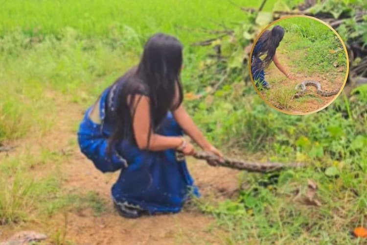 वीडियो में देखा जा सकता है कि साड़ी पहनी महिला ने अजगर की पूंछ पकड़ी थी. इसी बीच अजगर ने उस पर हमला किया, जिससे महिला डर गई और पूंछ छोड़कर पीछे हट गई. अजगर धीरे-धीरे झाड़ियों में चला गया, लेकिन महिला ने उसका पीछा नहीं छोड़ा. उसने फिर से अजगर की पूंछ पकड़कर झाड़ियों से बाहर खींचा और बड़ी मुश्किल से उसे रेस्क्यू किया.