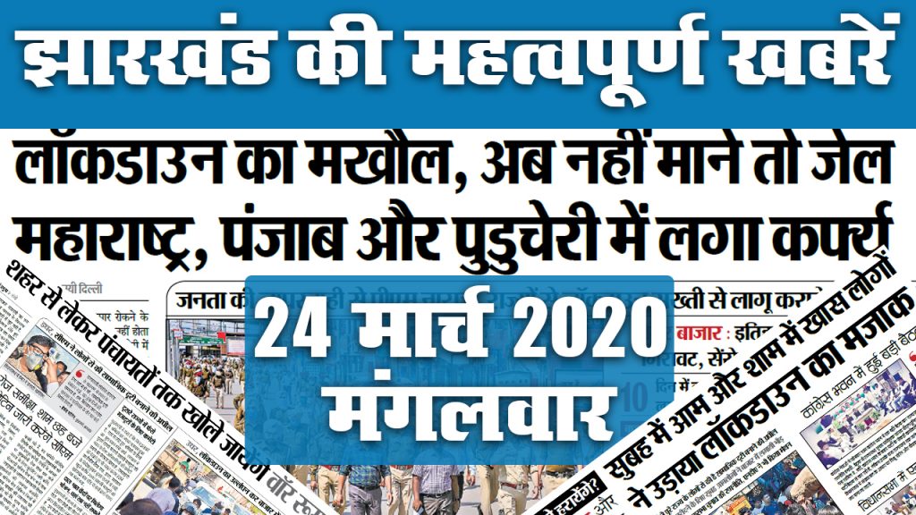 24 मार्च 2020, मंगलवार: देखिए पूरे Jharkhand में कौन सी खबरें बनीं अखबार की सुर्खियां