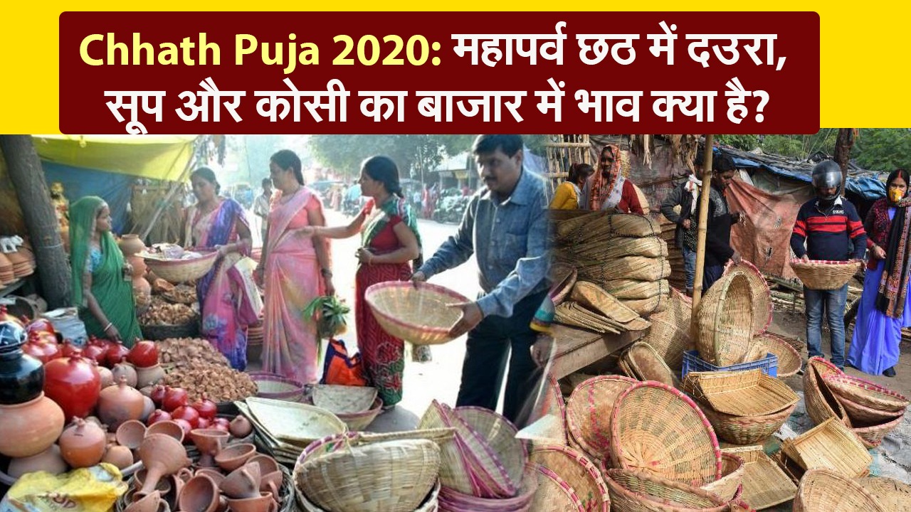 18 नवंबर को नहाय खाय के साथ ही आस्था का महापर्व छठ शुरू हो रहा है. छठ के लिए दउरा, सूप और कोसी की खरीद शुरू हो गई है. साथ ही डाबा नींबू सहित फल और लौकी का बाजार सज गया है. प्रभात खबर की टीम रांची के अलग-अलग बाजार में गई और कीमतें जानने की कोशिश की. बाजार में सूप की औसत कीमत 80 रूपये प्रति पीस है. वहीं दउरा 120 रूपये से लेकर 300 रुपये तक प्रति पीस बिक रहा है.