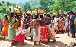थोड़ी देर में दुल्हन और दोनों सखियों को आगे और दूल्हे और उसके दोनों साथी को उनके पीछे नदी के बीच में खड़ा किया जाता है. पाहन पूजा करता है. गांव की बुजुर्ग महिलाएं नदी का पानी दूल्हे, दुल्हन के माथे पर लगाती हैं. नदी के बीच विवाह के रस्म पूरे होते हैं. अब सभी धीरे-धीरे गांव की ओर लौटते हैं. अंधेरा घिरने से पहले लड़के के परिवार वाले लड़की को गहने पहनाते हैं. इनमें लोहे के बहुत सारे हार, कान के झुमके, माला, साड़ी के ऊपर कमर में बांधने के लिए सुनहरी जंजीर, तरह तरह की अंगूठियां, चूड़ियां आदि चीजें हैं. सूरज नियमगिरि पहाड़ के पीछे धीरे-धीरे छिप रहा है. अंधेरा होने को है. यह दिन भी ढल रहा है. रातभर लड़कियां नाचती हैं. लड़के ढोल बजाते हैं, कुछ साथ में नाचते हैं. उनके गीतों में मैं भी डूब रही हूं. यह एक अलग ही दुनिया है, जहां नदी नए जोड़े का विवाह कराती है. यहां आम के पेड़ उनके विवाह के साक्षी बनते हैं. और नदियों के बिना किसी का विवाह संपन्न नहीं होता.