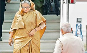 बांग्लादेश की प्रधानमंत्री शेख हसीना शुक्रवार को भारत पहुंचीं. प्रधानमंत्री नरेंद्र मोदी बिना किसी पूर्व निर्धारित कार्यक्रम के अपने आवास से सीधे उनका स्वागत करने के लिए आइजीआइ एयरपोर्ट पहुंच गये. मोदी ने बाद में ट्वीट किया, ‘भारत के राजकीय दौरे पर आयीं बांग्लादेश की प्रधानमंत्री माननीय शेख हसीना का स्वागत करके प्रसन्नता हुई.’