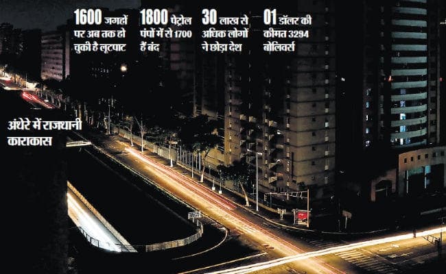 वेनेजुएला में जारी राजनीतिक संकट के बीच यहां के लोगों ने बिजली के बिना सोमवार को लगातार पांचवां दिन गुजारा. राजधानी काराकस समेत अधिकतर इलाकों में शाम होते ही पूरी तरह अंधेरा छा जाता है. काराकस के एक चिल्ड्रेन्स हॉस्पिटल में काम कर रही एक लैब टेक्नीशियन ने बताया कि वार्ड में बच्चों को मैनुअली सांस देकर जिंदा रखा जा रहा है. बिजली नहीं होने की वजह से इंटरमीडियट केयर में एडमिट दो बच्चों की मौत भी हो गयी.