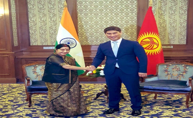 बिश्केकः शंघाई सहयोग संगठन (एससीओ) की बैठक में शामिल होने पहुंचीं विदेश मंत्री सुषमा स्वराज और किर्गिजस्तान के उनके समकक्ष चिंगिज एदारबेकोव के बीच मंगलवार को मुलाकात हुई. दोनों नेताओं के बीच आतंकवाद से खतरे समेत विभिन्न मुद्दों पर रचनात्मक बातचीत हुई. विदेश मंत्रालय के प्रवक्ता रवीश कुमार ने कहा कि बिश्केक में अपनी पहली बैठक में स्वराज ने एदारबेकोव के साथ राजनीतिक और रक्षा, व्यापार व निवेश, स्वास्थ्य, क्षमता निर्माण और दोनों देशों के लोगों की बीच संबंधों समेत द्विपक्षीय महत्व के सभी मुद्दों पर रचनात्मक बातचीत हुई. एससीओ के विदेश मंत्रियों की परिषद की दो दिवसीय बैठक में शामिल होने के लिए मंगलवार को किर्गिजस्तानकी राजधानी पहुंचीं स्वराज को यहां पहुंचने पर पारंपरिक स्वागत दिया गया.