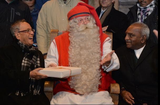 सांता क्लॉज इसी गांव में अपने दफ्तर से कामकाज देखते हैं जहां सालभर लोग उनसे मिल सकते हैं और अपनी इच्छा पूरी करने के लिए कह सकते हैं. मुखर्जी ने सांता के साथ तस्वीर खिंचाते हुए उनके साथ अपनी क्रिसमस की कामना भी साझा की और उन्हें उपहार में संगमरमर का हाथी दिया. राष्ट्रपति ने सांता से कहा, ‘‘भारत में लोग आपसे बहुत प्यार करते हैं. आपसे मुलाकात के साथ आपने मेरा दिन यादगार बना दिया.’’