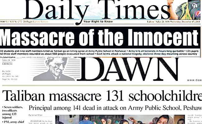 स्कूली बच्चों पर की गयी गोलीबारी की घटना पर पाकिस्तान के अखबारों में भी रोष दिखा. अपने-अपने संपादकीय में पड़ोसी मुल्क के जाने-माने अखबारों ने इस पर अलग-अलग तरह से प्रतिक्रियाएं दी हैं.