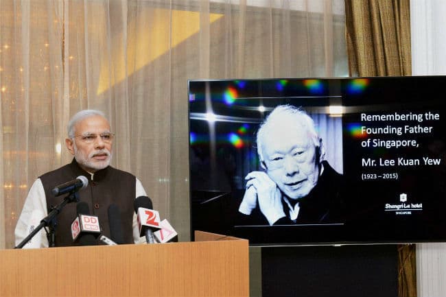 मोदी ने अक्तूबर, 2006 में गुजरात का मुख्यमंत्री रहते हुए सिंगापुर का दौरा किया था. उन्होंने कहा कि ली ‘हमारे समय के सबसे बडे नेताओं में से एक’ थे.यहां प्रधानमंत्री मोदी के अलावा अमेरिका के पूर्व राष्ट्रपति बिल क्लिंटन, आस्ट्रेलियाई प्रधानमंत्री टोनी एबट, इंडोनेशिया के राष्ट्रपति जोको विदोदो, दक्षिण कोरिया की राष्ट्रपति पार्क गुएन हे, मलेशिया के शाह अब्दुल हलीम शाह और इस्राइली राष्ट्रपति रुवे रिवलिन सहित कई वैश्विक नेता उपस्थित थे.