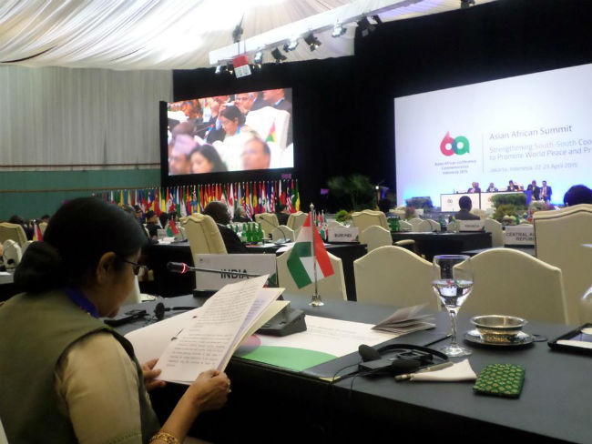 विदेश मंत्री सुषमा स्वराज ने यहां एशियन अफ्रीकन सम्मेलन 2015 को संबोधित करते हुए नई वैश्विक व्यवस्था के लिए संयुक्त राष्ट्र के सुधारों और इसके लिए कार्रवाई की मांग की.