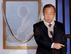म्यांमा पर बान के सलाहाकार और वरिष्ठ भारतीय राजनयिक विजय नांबियार ने संयुक्त राष्ट्र प्रमुख को उनके पहले योगाभ्यास का पाठ पढ़ाया था. यह अंतरराष्ट्रीय योग दिवस की तैयारी के लिए था. संयुक्त राष्ट्र के प्रवक्ता ने नांबियार के साथ अपने पहले योगासन का अभ्यास कर रहे बान की तस्वीर भी ट्वीट की थी.