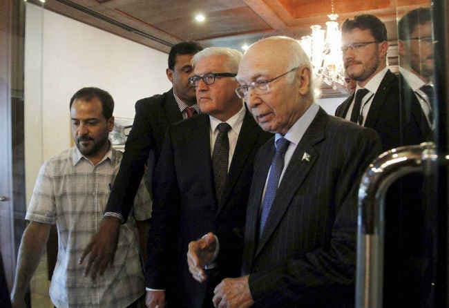 जर्मन विदेश मंत्री फ्रैंक-वाल्टर स्टेनमेयर ने यहां पाकिस्तान के राष्ट्रीय सुरक्षा सलाहकार सरताज अजीज के साथ साझा संवाददाता सम्मेलन में कहा, कश्मीर जैसे गहन मुद्दे हैं जिनकी बातचीत में अनदेखी नहीं की जा सकती. जर्मनी के सांसदों के एक शिष्टमंडल का नेतृत्व करते हुए कल रात अफगानिस्तान से पाकिस्तान पहुंचे स्टेनमेयर ने कहा कि दक्षिण एशिया के इन दो पडोसी देशों के बीच बातचीत ही आगे बढने का एकमात्र रास्ता है.