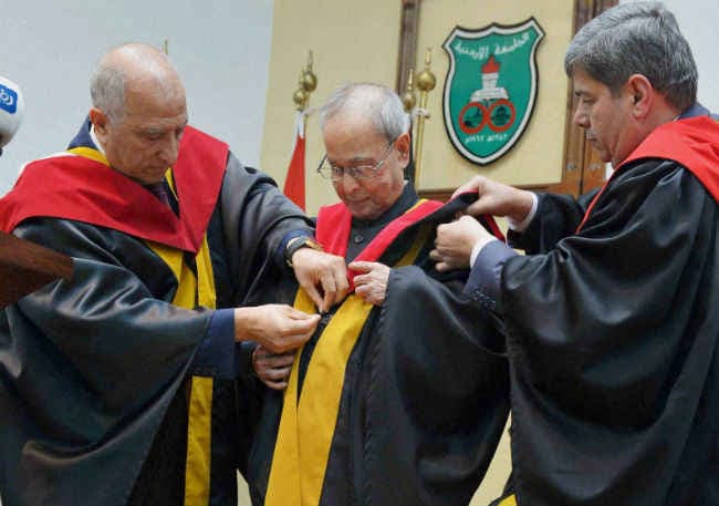 अल-कुद्स युनिवर्सिटी में राष्ट्रपति को मानद डाक्ट्रेट से सम्मानित किया जाना है. मुखर्जी पश्चिम एशिया के तीन राष्ट्रों की अपनी ऐतिहासिक यात्रा के दूसरे चरण में फलस्तीन में होंगे. इस चरण में वह इस्राइल में भी होंगे. कल उनकी जार्डन यात्रा मुकम्मल हुई थी. राष्ट्रपति के अल अक्सा मस्जिद जाने के कार्यक्रम पर बहु प्रचारित इस्राइली आपत्ति के बाद यह नया विवाद सामने आया है. फलस्तीनियों के शैक्षिक समर्थन एवं सहयोग में भारत हमेशा अग्रणी साझेदार रहा है. भारत फलस्तीन में क्षमता निर्माण प्रक्रिया की अग्रिम पंक्ति में रहा है.