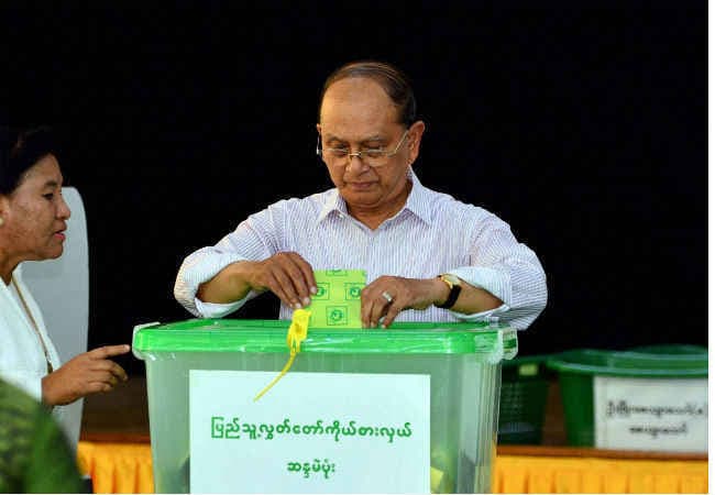 राजधानी ने-पी-ताव में शीर्ष जुंटा जरनलों में से एक, राष्ट्रपति थेन सिन ने मतदान के बाद स्याही लगी अपनी अंगूली मीडिया को मुस्कुराते हुए दिखायी. उनकी सत्तारुढ यूनियन सॉलिडारिटी एण्ड डेवेलॉपमेंट पार्टी (यूएसडीपी) सूची की पार्टी एनएलडी की जीत में मुख्य अवरोध है. बडी संख्या में मतदाता इस बात को लेकर भी परेशानी में हैं कि चुनाव में हारने के बाद देश की शक्तिशाली सैन्य शक्ति की प्रतिक्रिया कैसी होगी. राजधानी में वोट डालने के बाद सेना प्रमुख ने कहा कि सेना जनादेश का सम्मान करेगी. मिन आंग हलाइंग ने संवाददाताओं से कहा, ‘जैसे एक विजेता परिणाम को स्वीकार करता है, वैसे ही एक पराजित को भी करना चाहिए.’