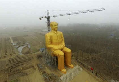 चीन के कम्युनिस्ट पार्टी के संस्थापक माओ की 36.6 मीटर (120 फुट) ऊंची प्रतिमा को यूनान प्रांत के तोंग्क्सु में लगाया गया था. इस प्रतिमा को बनाने में 457,000 डालर खर्च आया था. सुनहरे रंग की इस प्रतिमा को बनवाने में जो खर्च आया था, उसे स्थानीय व्यवसायियों और ग्रामीणों ने उठाया था.