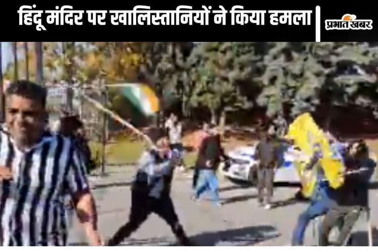 Canada Hindu Attacked Video : कनाडा में हिंदुओं को लगातार निशाना बनाया जा रहा है. इस बार खबर ब्रैम्पटन के हिंदू सभा मंदिर से आ रही है. जानकारी के अनुसार, मंदिर में श्रद्धालुओं पर खालिस्तानियों ने हमला किया जिसका वीडियो सामने आया है. हिंदू फोरम कनाडा ने अपने सोशल मीडिया प्लेटफार्म एक्स पर वीडियो शेयर किया. इसमें खालिस्तानी समर्थक हाथों में पीले झंडे लेकर मंदिर परिसर में हंगामा करते हुए नजर आ रहे हैं. कुछ खालिस्तानी हिंदू श्रद्धालुओं पर डंडे से वार करते दिख रहे हैं. वीडियो के सामने आने के बाद हिंदू समाज में नाराजगी है.