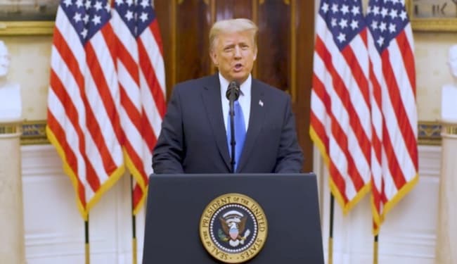 अमेरिकी राष्ट्रपति डोनाल्ड ट्रंप ने 19 मिनट के रिकॉर्ड किये गये वीडियो में व्हाइट हाउस प्रशासन को शुभकामनाएं भी दीं. साथ ही घोषणा की कि वह जो बाइडेन के शपथ में शामिल नहीं होंगे.