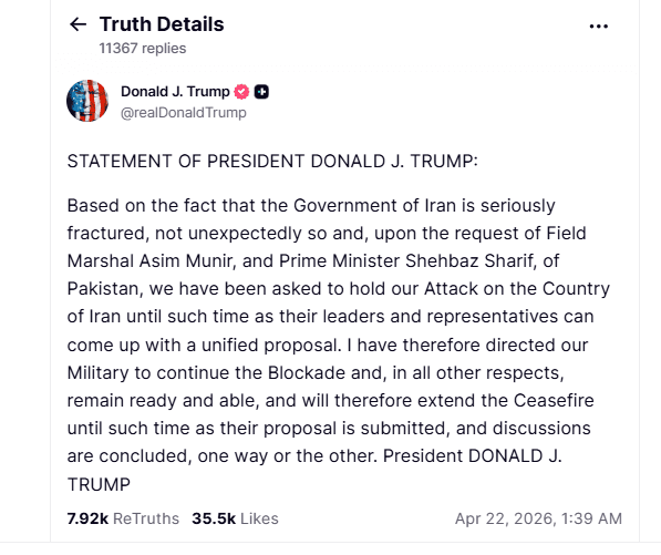 US–ईरान तनाव: ट्रंप ने बढ़ाया सीजफायर, नाकेबंदी जारी, ईरान के प्रस्ताव पर टिकी निगाहें