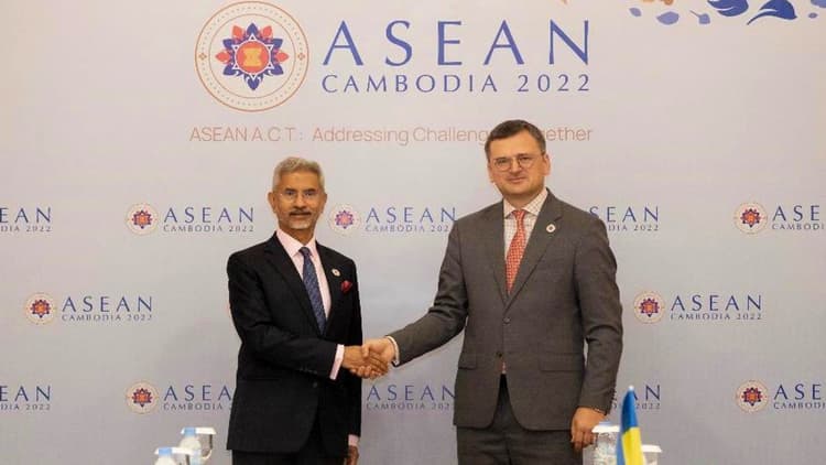 यूक्रेनी विदेश मंत्री दमित्रो कुलेबा से मुलाकात के बाद डॉ एस जयशंकर ने ट्वीट किया कि यूक्रेन के विदेश मंत्री दिमित्रो कुलेबा से मिलकर खुशी हुई. हमारी चर्चाओं में रूस के साथ यूक्रेन के संघर्ष में हालिया घटनाक्रम, अनाज निर्यात की पहल और परमाणु चिंताएं शामिल थीं. डॉ एस जयशंकर उपराष्ट्रपति जगदीप धनखड़ के साथ कंबोडिया की यात्रा पर गए हुए हैं, जो यहां आसियान-भारत शिखर सम्मेलन और 17वें पूर्वी एशिया शिखर सम्मेलन में भारतीय प्रतिनिधिमंडल का नेतृत्व कर रहे हैं.